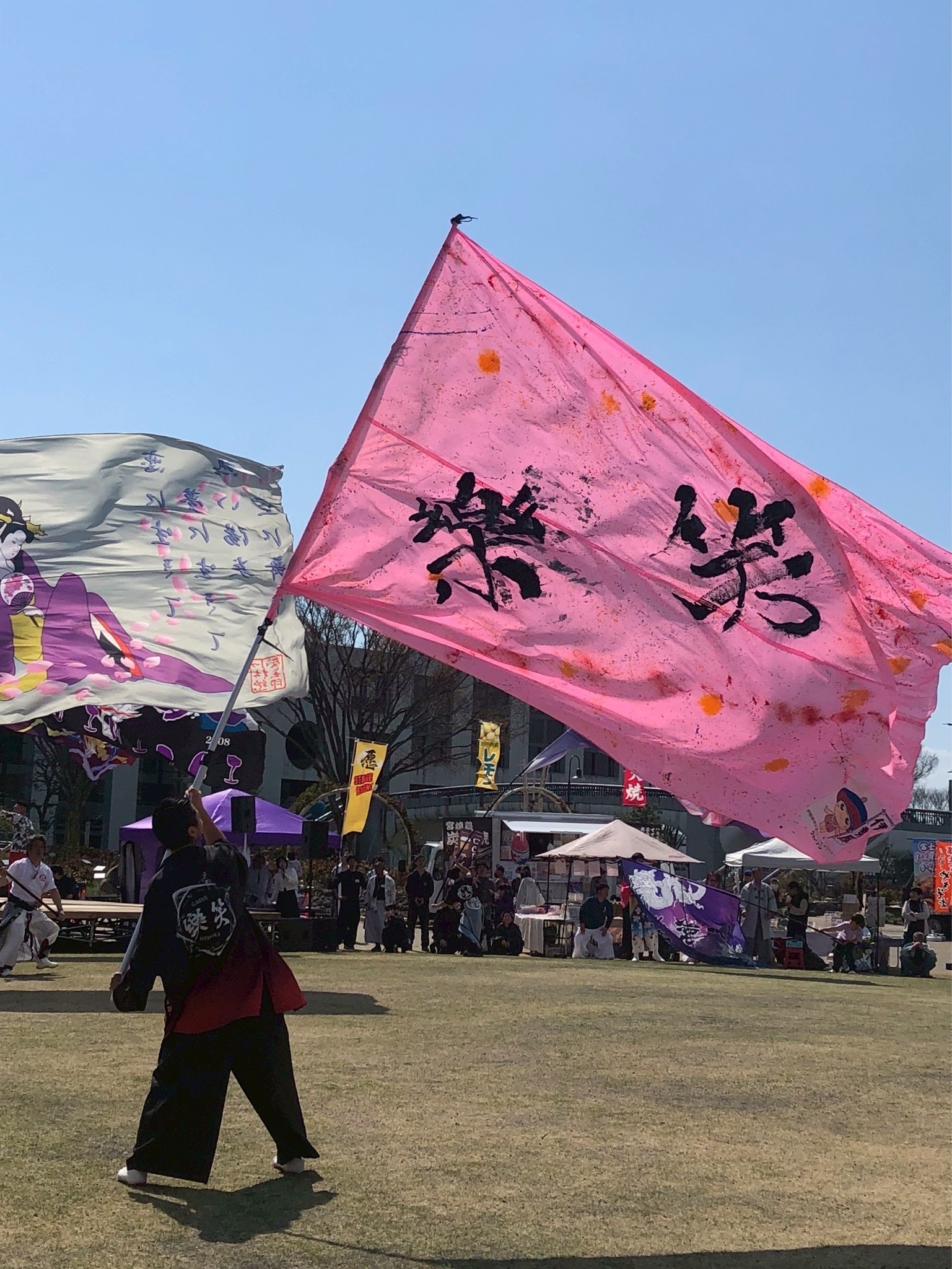 女性旗士のあゆみちゃんは大旗だって振っちゃいまーす💪